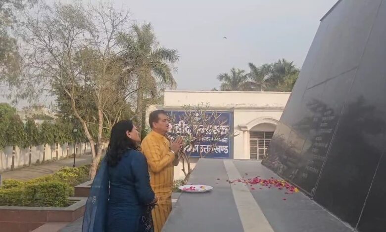 कैबिनेट मंत्री डा. अग्रवाल अपनी धर्मपत्नी के साथ पहुंचे उत्तराखंड शहीद स्मारक ,अमर शहीदों को अर्पित की पुष्पांजलि