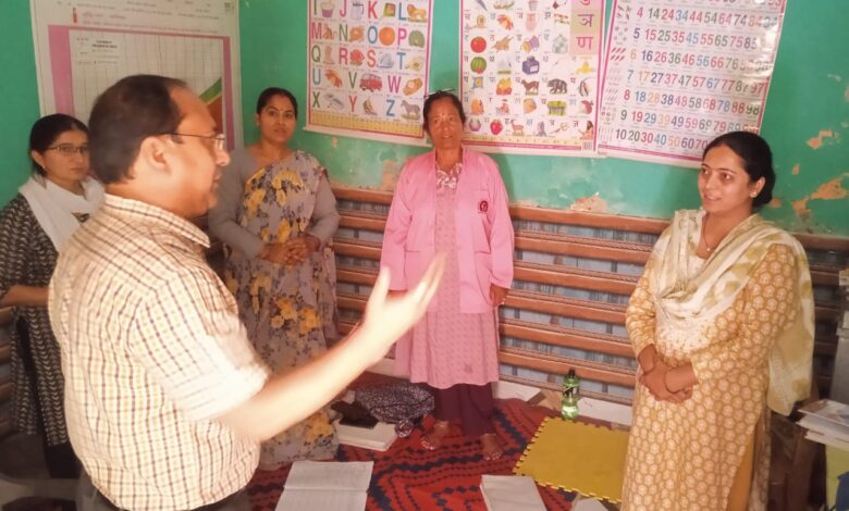 माली मोहल्ले में ग्राम स्वास्थ्य एवं पोषण दिवस पर लाभार्थियों से की वार्ता