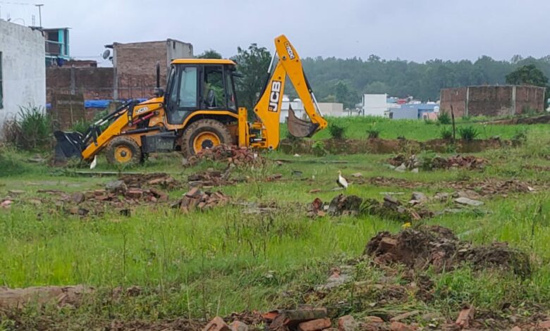 अभियान जारी- 20 बीघा अवैध प्लाटिंग पर गरजी एमडीडीए की जेसीबी