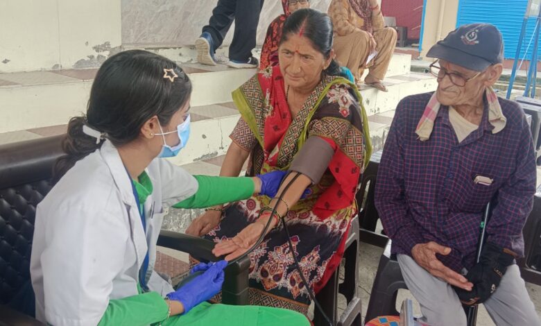 श्री महंत इन्दिरेश अस्पताल की ओर से ईसीजी, ब्लड शुगर, ब्लड प्रैशर की हुईं निःशुल्क जांचें व दवाईयों का वितरण