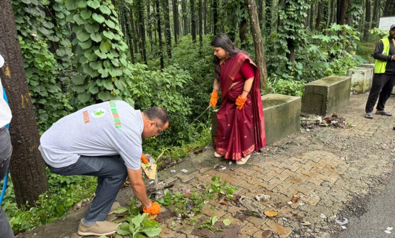 महापौर सौरभ थपलियाल व नगर आयुक्त नमामि बंसल रहे मौजूद,मार्ग के दोनों ओर व समीपवर्ती वन क्षेत्रों की गई सफाई