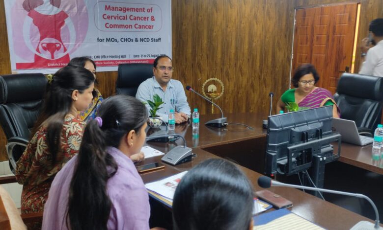 देहरादून।जनपद देहरादून में सर्वाईकल कैंसर की प्रारम्भिक जांच के संबंध में जनपद के समस्त सीएचओ को प्रशिक्षण दिया जा रहा है। मुख्य चिकित्सा अधिकारी कार्यालय देहरादून में गैर संचारी रोग नियंत्रण कार्यक्रम के अंतर्गत प्रदान किये जा रहे इस प्रशिक्षण के उपरांत जनपद के समस्त सीएचओ आयुष्मान आरोग्य मंदिर में सर्वाईकल कैंसर की प्रारम्भिक जांच कर पायेंगे। गुरूवार को डोईवाला और रायपुर ब्लॉक के सामुदायिक स्वास्थ्य अधिकारियों को यह प्रशिक्षण दिया गया।