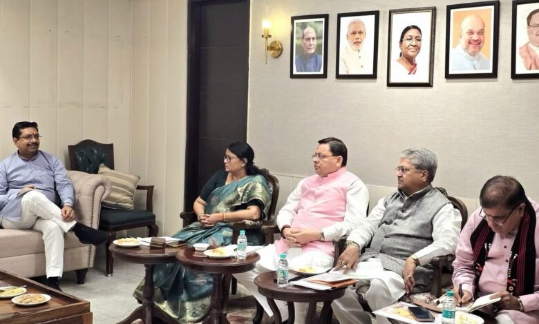 दिल्ली में हुई बैठक में सीएम धामी, प्रदेश प्रभारी, प्रदेश अध्यक्ष और सांसद रहे मौजूद