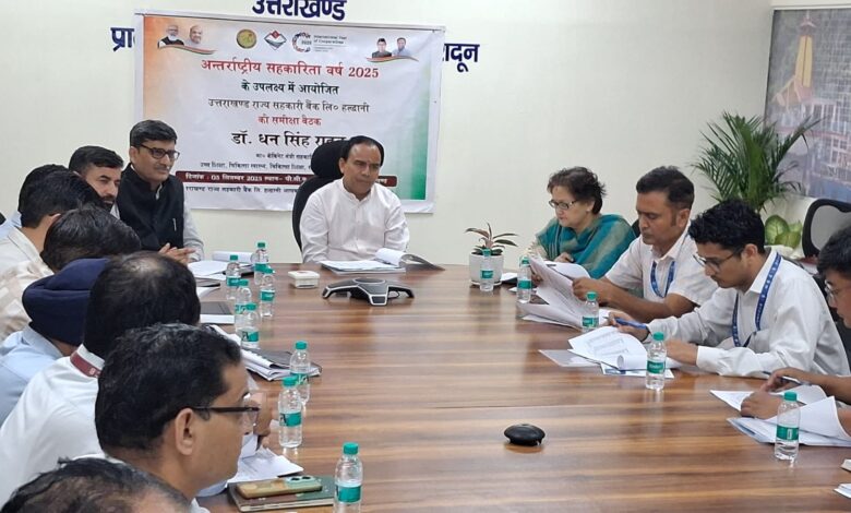 बैठक में जिला सहकारी बैंक टिहरी एवं हरिद्वार के पूर्व अध्यक्ष सुभाष रमोला एवं प्रदीप चौधरी,अपर निबंधक ईरा उप्रेती,प्रबंध निदेशक राज्य सहकारी बैंक प्रदीप मेहरोत्रा,जीएम आकांक्षा कंडारी एवं सुरेश नपच्याल,डीजीएम नाबार्ड भूपेंद्र कुमावत,