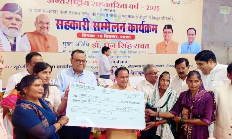 यह बात प्रदेश के सहकारिता मंत्री डॉ धन सिंह रावत ने गुरुवार को अंतरराष्ट्रीय सहकारिता वर्ष-2025 के उपलक्ष्य में उत्तराखंड राज्य सहकारी संघ द्वारा निरंजनपुर सहकारी क्षेत्रीय कार्यालय में आयोजित सहकारी सम्मेलन में कही। “आर्थिक व्यवहार और सहकारी संस्थाएँ” थीम पर आयोजित कार्यक्रम में डॉ रावत ने कहा कि उत्तराखंड राज्य सहकारी संघ वर्तमान में 500 करोड़ रुपये के टर्नओवर के साथ राज्य की शीर्ष सहकारी संस्था है, और संघ ने अब 3 हजार करोड़ टर्नओवर का लक्ष्य तय किया है। इसके लिये संघ ने प्रदेशभर में नई व्यापारिक गतिविधियों का संचालन करेगा। इसके तहत सहकारी संघ जल्द ही हरिद्वार जनपद में मिनरल वाटर प्लांट की स्थापना करेगा और बाजार में ‘हिमाला जल’ नाम से बोतलबंद पानी लांच करेगा। इसके अलावा ऑर्गेनिक बायो-फर्टिलाइज़र निर्माण व फिनाइल उत्पादन इकाई की भी स्थापना की जायेगी। साथ ही प्रदेशभर में 500 सहकारी क्रय केंद्रों की स्थापना की भी योजना है। डॉ रावत ने कहा कि इन क्रय केंद्रों में किसानों को उनके अनाज, फल एवं सब्जियों का उचित मूल्य सीधे गाँव स्तर पर उपलब्ध होगा। इस व्यवस्था से बिचौलियों की भूमिका समाप्त कर लाभ सीधे किसानों तक पहुँचाने का लक्ष्य है