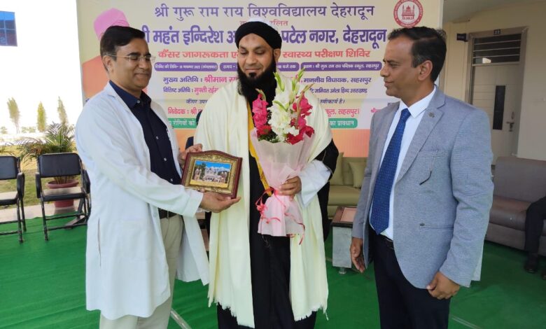 देहरादून। ग्रामीण क्षेत्रों में स्वास्थ्य सुविधाओं को सुलभ बनाने के उद्देश्य से श्री गुरु राम राय विश्वविद्यालय तथा श्री महंत इन्दिरेश अस्पताल, देहरादून के सौजन्य से मंगलवार को श्री गुरु राम राय पब्लिक स्कूल, सहसपुर में कैंसर जागरूकता एवं निःशुल्क स्वास्थ्य परीक्षण शिविर का सफल आयोजन किया गया। शिविर में 2104 मरीजों ने निःशुल्क जांच व परामर्श सेवाओं का लाभ उठाया।