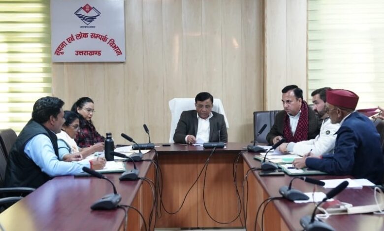 देहरादून।मुख्यमंत्री पुष्कर सिंह धामी के निर्देशानुसार सूचना महानिदेशक बंशीधर तिवारी की अध्यक्षता में पत्रकार कल्याण कोष (कॉरपस फंड) एवं मुख्यमंत्री पत्रकार सम्मान पेंशन योजना समिति की बैठक संपन्न हुई।