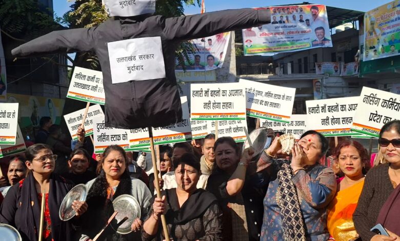 देहरादून। महिला नर्सिंग कर्मी पर महिला पुलिसकर्मी के थप्पड़ जड़ने के विरोध में मंगलवार को महिला कांग्रेस की कार्यकर्ताओं और नर्सिंग एकता मंच ने पुलिस मुख्यालय घेराव किया।