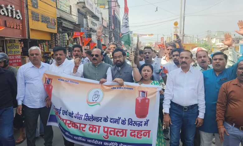 रसोई गैस व पेट्रोल-डीजल की बढ़ती कीमतों को लेकर यूथ कांग्रेस व व्यापार मंडल ने किया प्रदर्शन