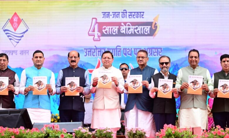 सरकार के चार वर्ष पूरे होने पर परेड ग्राउंड में आयोजित 4 साल बेमिसाल कार्यक्रम में बोले सीएम धामी- बीते चार वर्षों में उत्तराखंड बना कई ऐतिहासिक उपलब्धियों का साक्षी