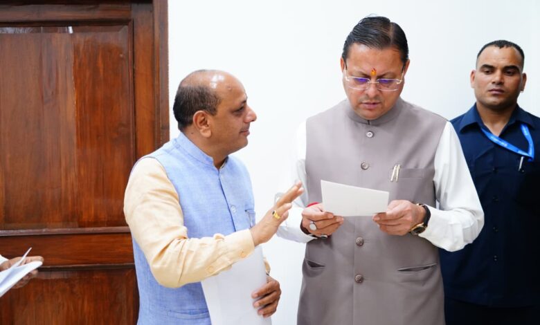 सीएम आवास में मुख्यमंत्री धामी से मुलाकात कर अनुरोध पत्र सौंपा