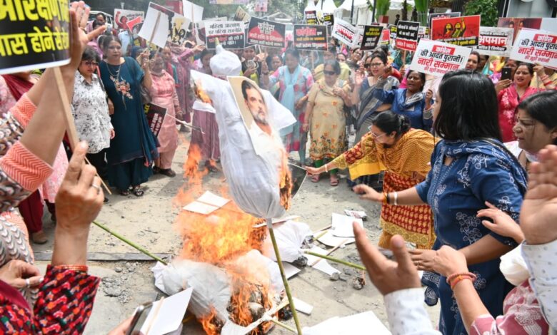 नारी शक्ति वंदन अधिनियम का विरोध करने को लेकर जताई सख्त नाराजगी – मातृशक्ति ने कांग्रेस व उसके सहयोगी दलों का पुतला दहन कर जताया आक्रोश