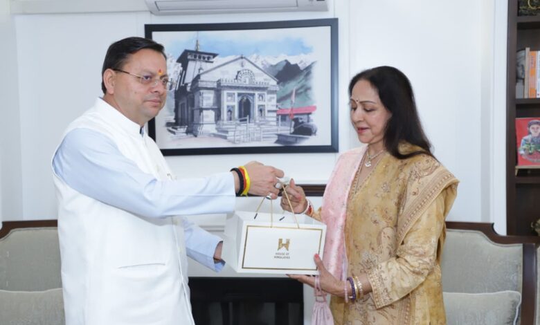 सीएम धामी से की मथुरा सांसद हेमा मालिनी ने शिष्टाचार मुलाकात , दिग्गज अभिनेत्री को उत्तराखण्ड के स्थानीय उत्पादों के अम्ब्रेला ब्रांड हाउस ऑफ़ हिमालयाज़ के उत्पाद किए गिफ्ट